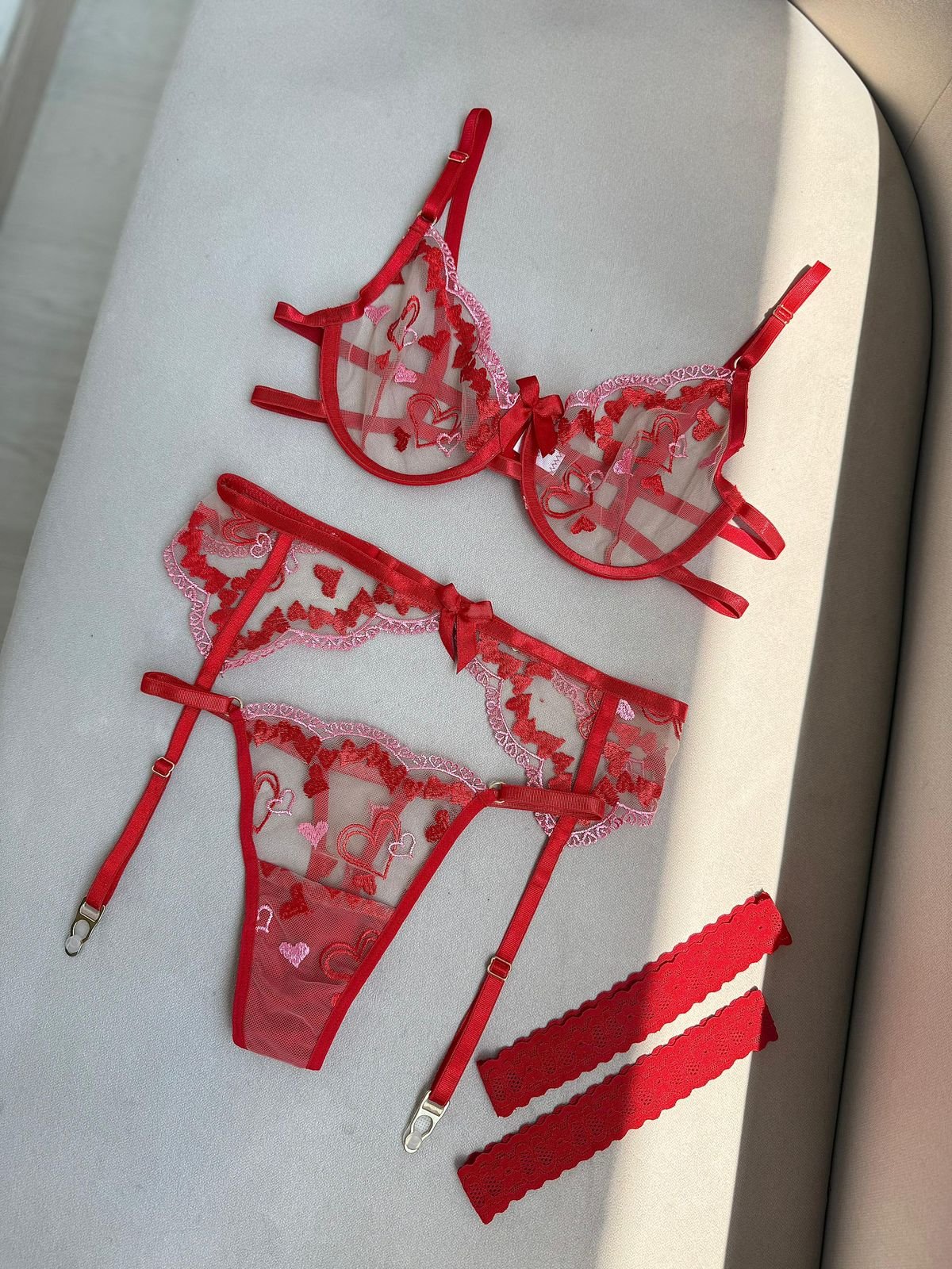 Liguero confeccionado en tull delicado con bordados artesanales de corazones y moños que realzan su elegancia. Diseño romántico y sofisticado pensado para momentos especiales, ofreciendo comodidad y confianza en su uso. Los detalles bordados añaden un toque de feminidad y distinción. Perfecto para quienes buscan prendas íntimas que combinen estilo, calidad y sensualidad en una sola pieza.